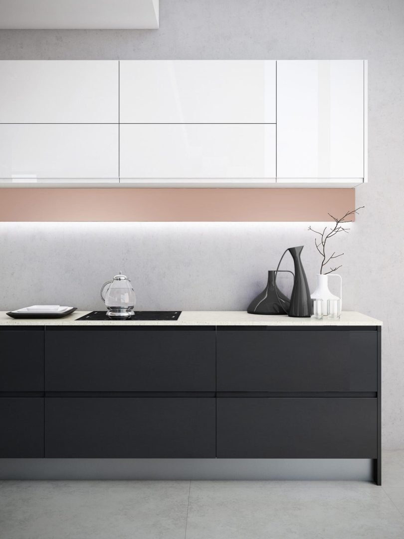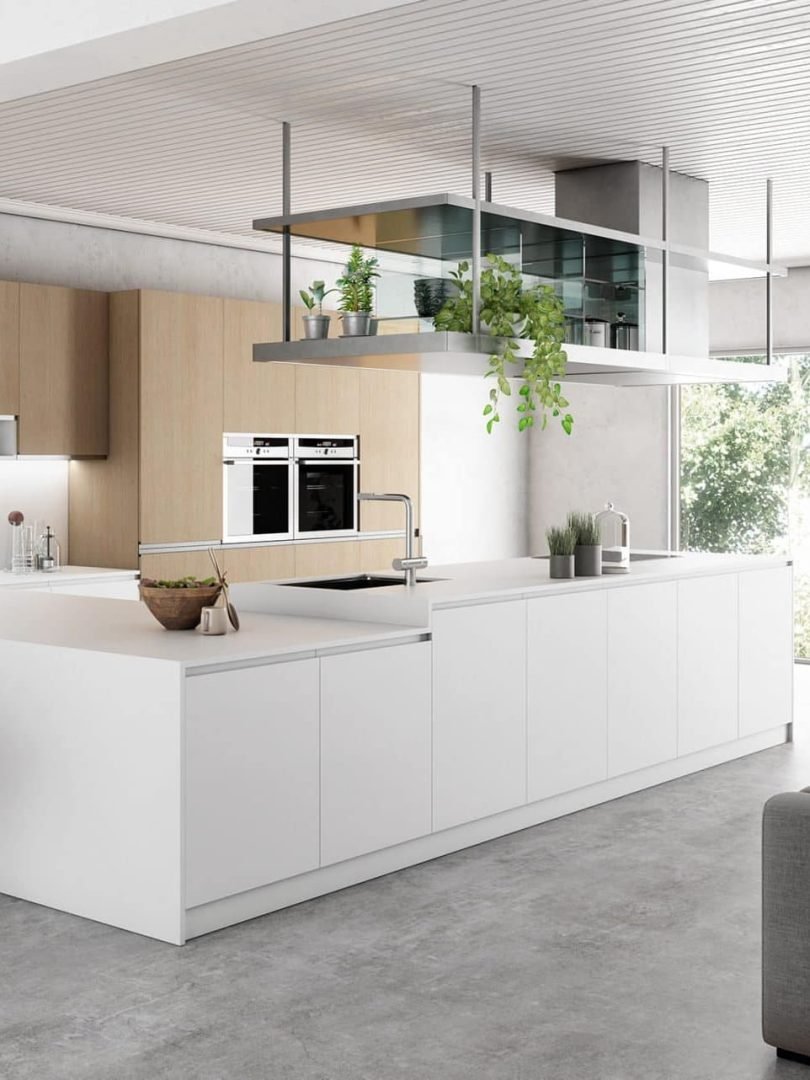 Le linee orizzontali che attraversano tutta la larghezza dei mobili evocano un senso di continuità e spazialità, perfetto per cucine moderne che aspirano a un’estetica minimalista. Queste linee fluide ed ininterrotte dei mobili richiamano la calma e l’armonia del paesaggio naturale e contribuiscono a mantenere un’atmosfera rilassata e sofisticata, rendendo lo spazio più aperto e accogliente.